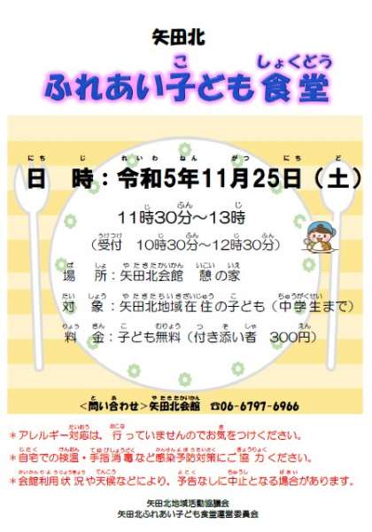 矢田北 子ども食堂(11月の案内)