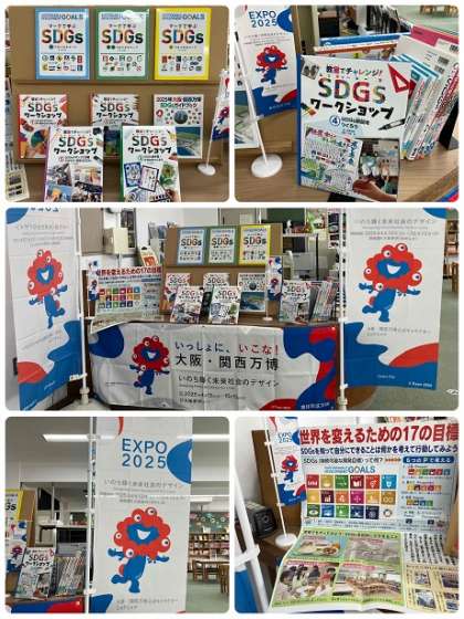 区役所より、「大阪・関西万博」に関する本」や「SDGsに関する本」をいただきました。図書室に設置していますので、一度、手に取って読んでみてください。