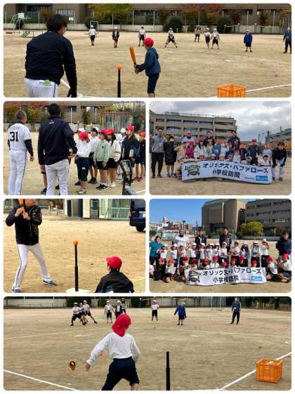 トップアスリート「夢・授業」で、オリックス・バッファローズ(プロ野球パ・リーグ3連覇)の選手に来ていただき、3・4年生対象にTボール(野球型ゲーム)を教えていただきました。全員がホームランを目指して、思いっきりバットを振りました。どの試合も白熱したゲームとなりました。
