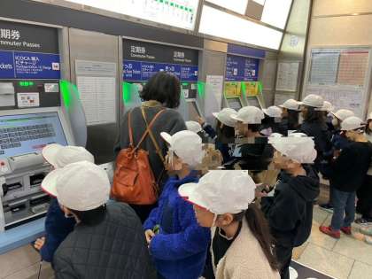 2年生は、阿部野橋駅に探検に行きました。駅では安全確保の工夫や、券売機の秘密など、いろいろなことを学習しました。帰りは自分で切符を買って矢田駅まで帰ってきました。