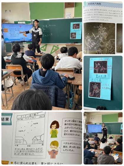 4年生の理科です。「冬の大六角形」について、学習していました。「夏の大三角」と比べて、冬の夜空を観察してみましょう。