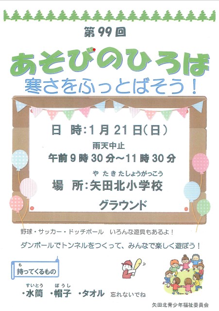 矢田北青少年福祉委員会の「あそびのひろば」を開催します。