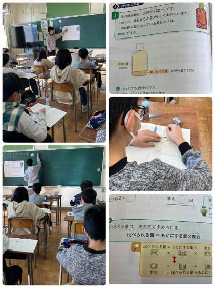 比べれれる量やもとにする量、割合の関係性について考えました。