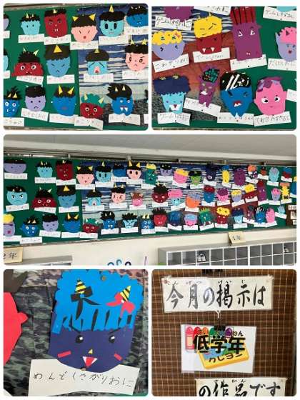 2月の玄関掲示は、低学年(1・2年生)が担当しました。