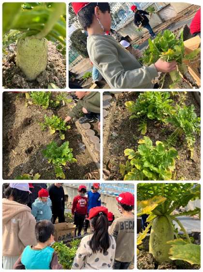 みんなで育てた大根をぬきました!!大きく育ちましたね!!