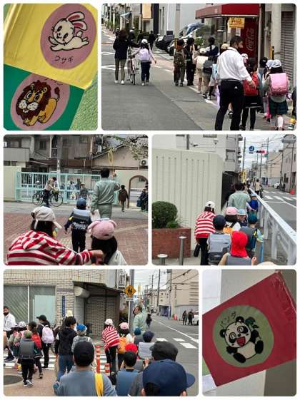 1年生は、3つのコースに分かれて、集団で下校しています。ライオンコース、うさぎコース、パンダコースです。しっかりと道順を覚えましょうね。
