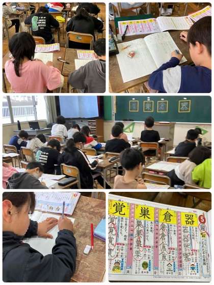 4年生の国語の時間です。漢字の学習のスタートです。漢字ドリルをしっかり見て、丁寧に漢字を書いています。今年もたくさん、漢字を覚えましょうね。