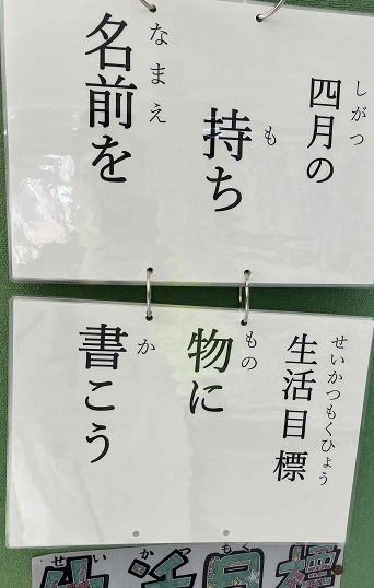 4月の生活目標は「持ち物に名前を書こう」です。