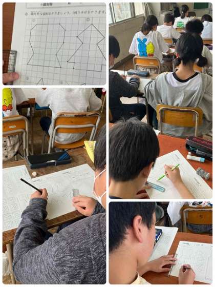 6年生の算数です。「対称な図形」のまとめの学習です。「線対称」「点対象」について確認していました。