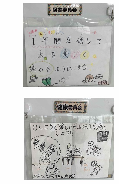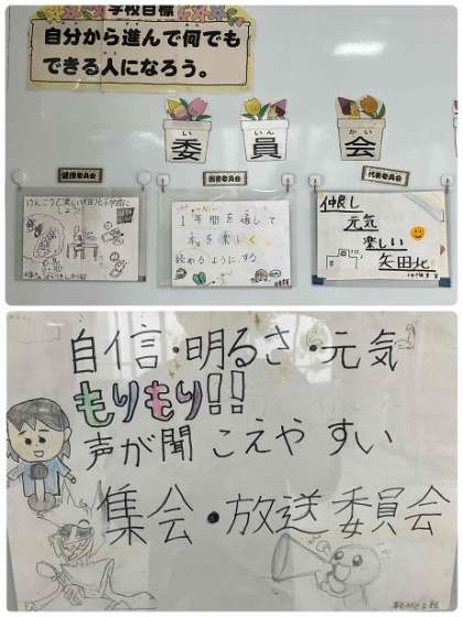 健康委員会、図書委員会、運動委員会、集会・放送委員会、代表委員会の目標が決まりました。よりよい学校生活にするために児童会のみなさん、どうぞよろしくお願いします。