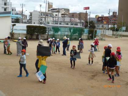 運動場では、3年生が理科の学習をしていましたが、太陽が雲に隠されてしまいました。