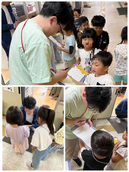 1年生の生活科の学習です。「学校の人となかよくなろう」のテーマで、校内を回っていました。職員室前では、元気よくあいさつをして、サインをもらっていました。学校で働いているたくさんの人の名前を覚えることができたかな。