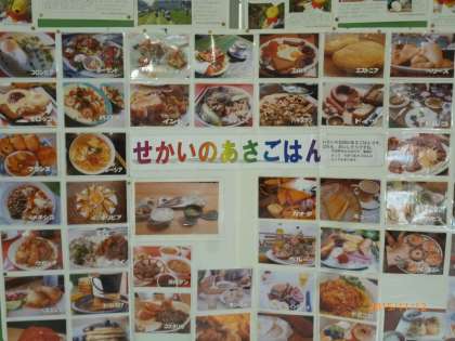 玄関で「健康フエアー」の展示をしています。食に関する展示です。