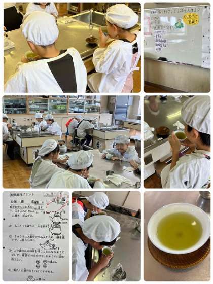 5年生の家庭科の授業です。調理実習で「お茶」の学習をしました。自分たちでお湯を沸かして、お茶を入れました。甘くて、おいしいお茶でしたね。