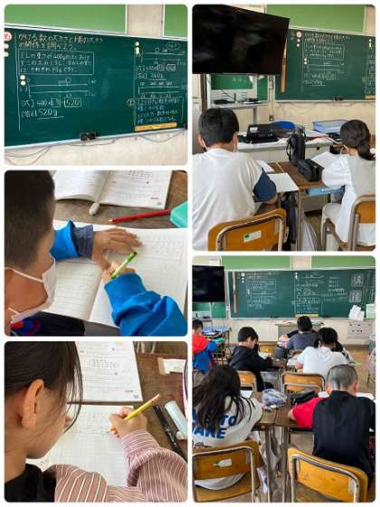 5年生の算数です。「かける数の大きさと積の大きさの関係」について、調べました。