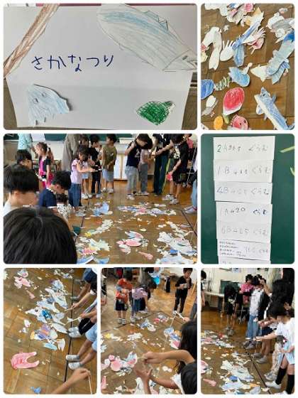 今日は、まちにまった「やたきたまつり」です。たてわり班でお店を回りました。どの学年のお店も楽しく遊べましたね。