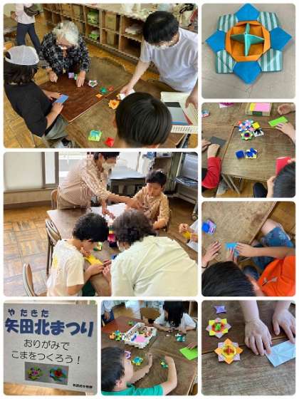 地域の女性部の方がお店を開いてくださいました。おりがみでこまを作成しました。親切に教えてくださり、簡単に制作できました。素敵な作品を持って帰りますので、是非見てあげてください。