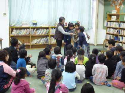 矢田北お話しBOXの方々においでいただき、絵本の読み聞かせをしていただきました。たくさんの本と出会ってほしいと思います。