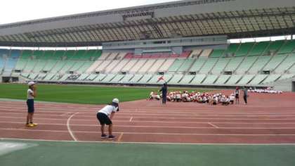 長居陸上競技場で、市内6校の小学校6年生が参加してスポーツ交歓会がありました。午前中は50m走・100m走・400mリレーが行われ、その後、第二スタンドで昼食をとり、午後は、サッカー・ドッジボール・大なわが行われました。子どもたちにとって貴重な体験になりました。