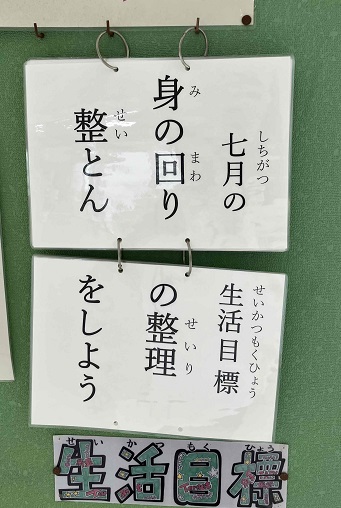 今月の生活目標は「身のまわりの整理整とんをしよう」です。