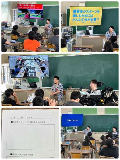 矢田北小学校では、地域の作業所の「あかおに」さんと交流をしています。今日は、5年生との交流です。「障がい者とスポーツ」のテーマで普段の生活の様子やスポーツについて、教えていただきました。お互いが支えあって、生活することの大切さを学びました。(9月18日 記事)