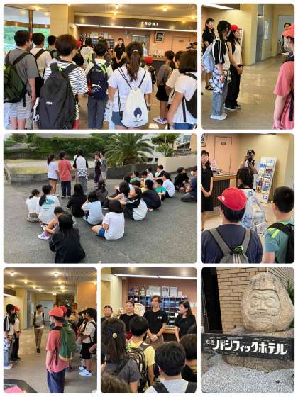 部屋割のあと、避難訓練で避難経路の確認をしました。