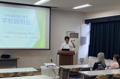 学校選択制に係る学校説明会を開催しました。1年生の授業を参観後、会議室にて、矢田北小学校の概要の説明及び、質疑応答を行いました。