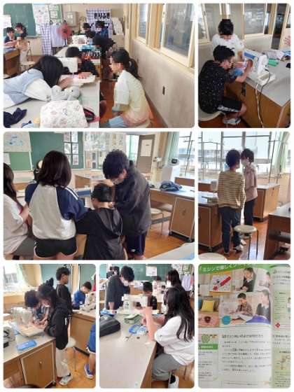 5年生の家庭科です。「ミシンで楽しくソーイング」の学習で、ナップザックを作ります。