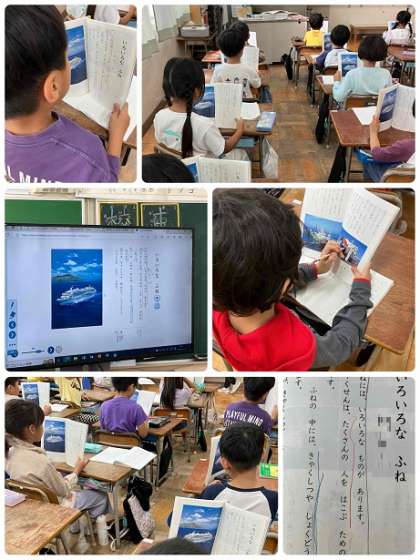 1年生の国語の学習です。「いろいろなふね」の音読をしています。大きな声でしっかりと読んでいます。