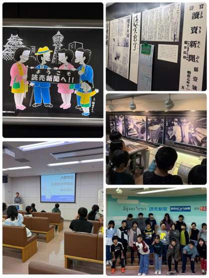 5年生が社会見学で読売新聞大阪本社に行ってきました!普段は見ることのできない新聞の印刷や配送するための仕分けの行程を見ました。また、新聞がどのように作られているのかがわかるビデオを見ました。新聞の秘密を知ったときは思わず「へ〜」「お〜」と歓声が上がっていました。