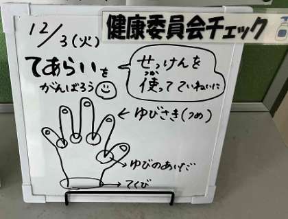 保健室前の掲示です。みなさん、しっかり手を洗っていますか?ゆびさきやゆびのあいだ、手首などをしっかり洗いましょうね。