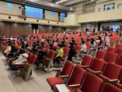 3学期の始業式を行いました。はじめに校歌を元気いっぱい歌って、学校長の話を聞きました。新しい年に具体的な目標を立てて、頑張りましょう。3学期は、まとめの学期です。しっかりとまとめをして、新しい学年に向けて準備をしましょうね。