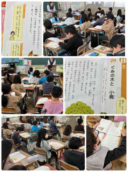 2年生の道徳の学習です。「ぐみの木と小鳥」物語を読み、ぐみの木や小鳥、リスの気持ちを考えました。「親切」することの大切さを学びました。