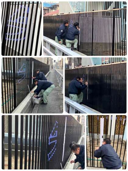 創立50周年にむけて、外柵アートの作業を進めています。「矢田北小」の文字が浮かびあがります。歩行する方の妨げにならないように作業いたします。完成を楽しみにしてください。