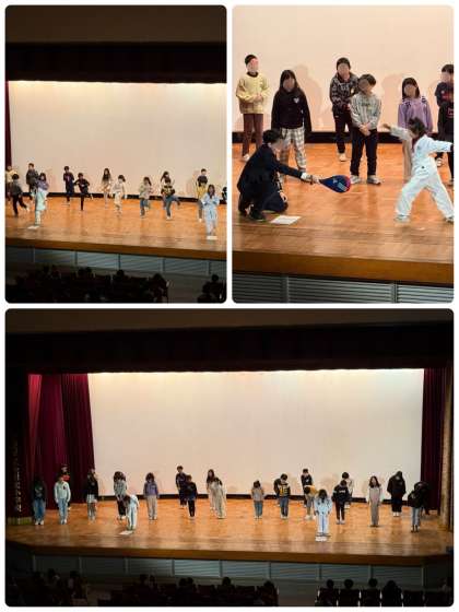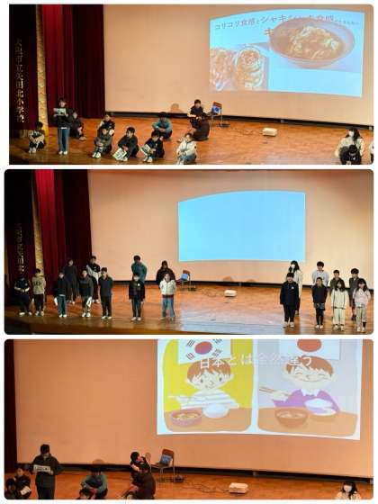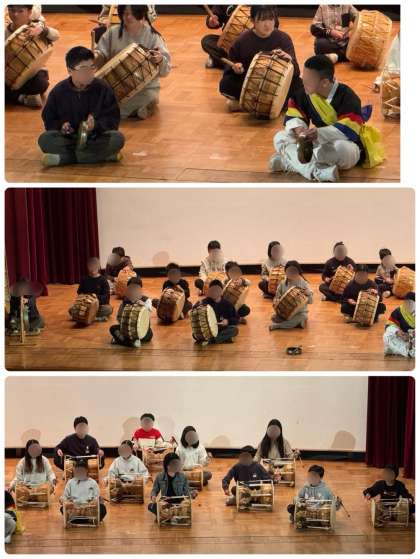 4年生はテコンドーの発表をしました。5年生はコリアタウンについて発表しました。6年生は「サムルノリ」を演奏しました。