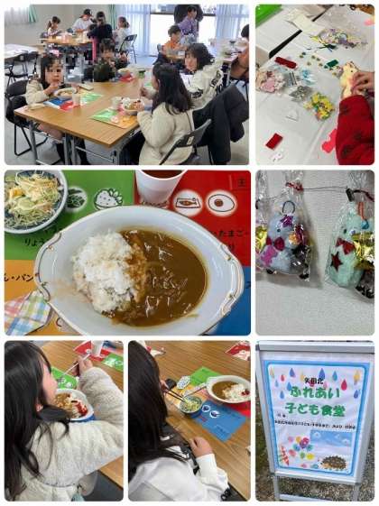 1月の矢田北「ふれあい子ども食堂」の様子です。毎月1回土曜日11時30分より、矢田北会館で行われています。本日は、カレーライスでした。