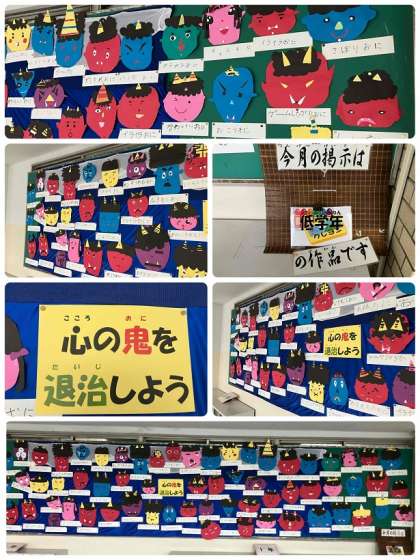 2月の玄関掲示は、低学年(1・2年生)が担当しました。