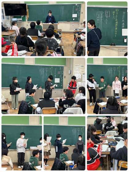 5年生の国語の学習です。「方言と標準語」について学習しました。めあてを「方言と共通語を使い分けて話してみよう」とし、ニュース番組のアナウンサー役や地域の人になりきって、楽しく話しました。