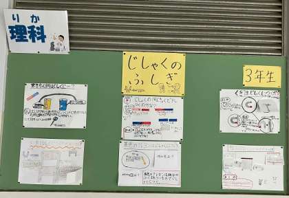 サイエンスコーナーを2月号に更新しました。今回のテーマは3年生「じしゃくのふしぎ」です。じしゃくにくっつくもの、くっつかないもの色々と調べました。
