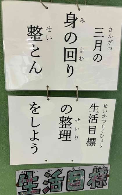 3月の生活目標は「身のまわりの整理整とんをしよう」です。