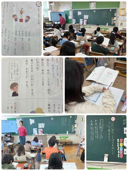 2年生の国語の学習です。「にた いみの ことば」について学習しています。