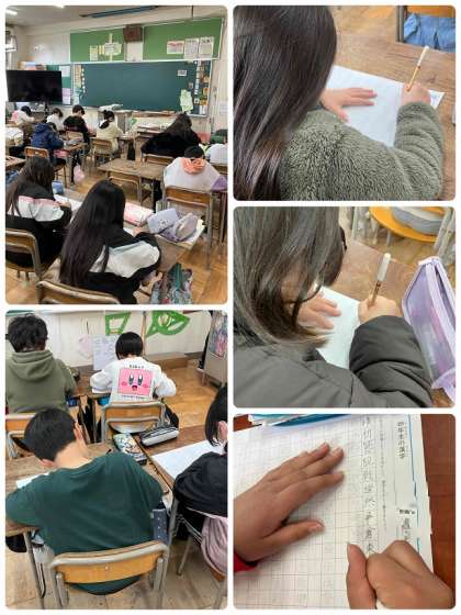 4年生の書写の時間です。「4年生の漢字」のまとめをしています。点やはらい、とめなどに気をつけて、丁寧に書いています。しっかり復習して5年生を迎えましょうね。