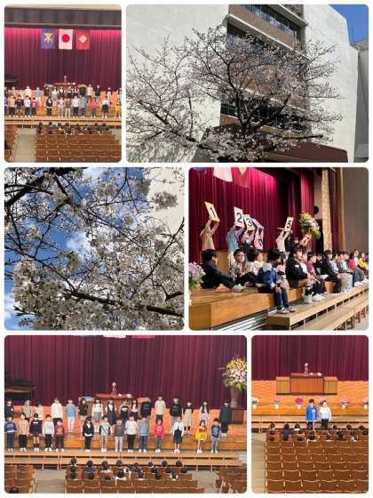 満開の桜が咲き誇る中、晴れやかに第51回 入学式を挙行いたしました。1年生は、姿勢よくしっかりと式に臨んでいました。6年生の代表からのお祝いの言葉、2年生から歓迎の演技を見て、和やかな雰囲気の中、閉式しました。