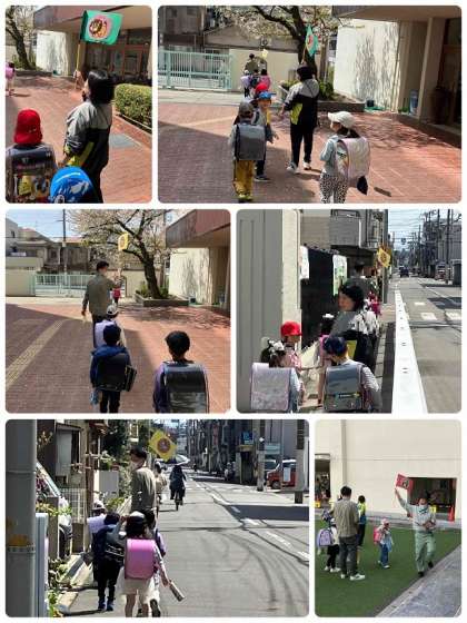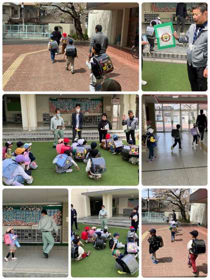 1年生は、3つのコースに分かれて、集団で下校しています。ライオンコース、うさぎコース、パンダコースです。しっかりと道順を覚えましょうね。