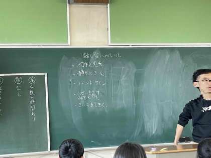 5年生の学級開きです。話し合いのルールの確認を行っています。