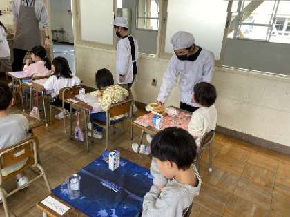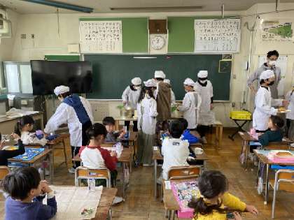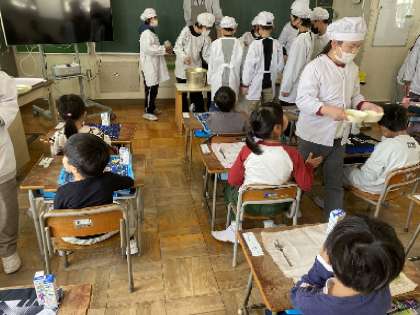1年生は今週いっぱい6年生のお兄さん・お姉さんに給食を準備してもらっています。毎日6年生が届けてくれる給食を楽しみにしています♪給食を食べて元気モリモリです!
