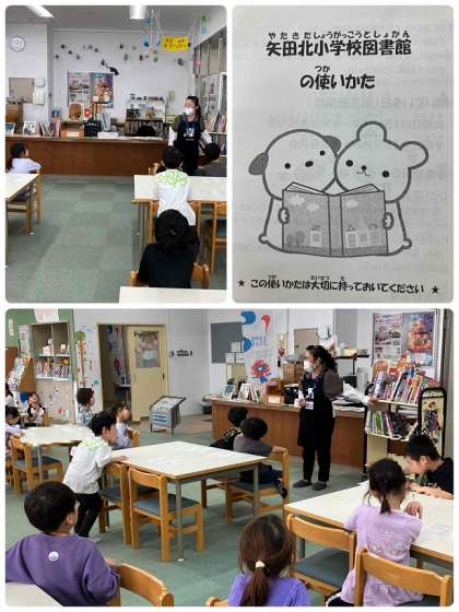 1年生の図書の時間です。今日は、図書司書の先生から「図書館の使い方について」教えていただきました。ルールを守って、本をたくさん借りてくださいね。