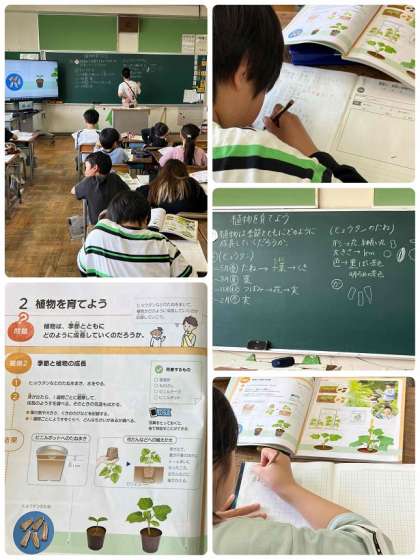 4年生の理科の授業です。「植物を育てよう」の学習で、ヘチマやヒョウタンを育てます。水やりを頑張って、しっかりと観察しましょうね。