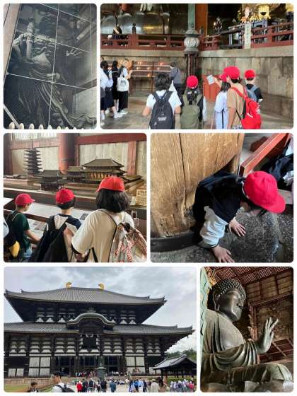 東大寺では、奈良の大仏を見学し、その大きさに驚きました。