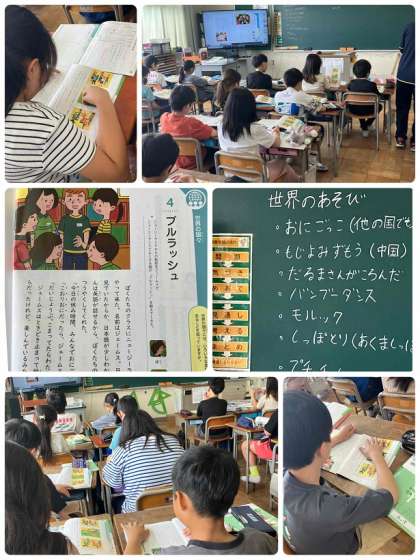 4年生の道徳の時間です。ニュージーランドから転校してきたお友だちから教えてもらった「ブルラッシュ」という遊びの話を通して、世界の遊びについて考えました。日本の遊びとにているところもありましたね。
